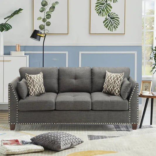 3 Seater Sofa: 3-Seater Sofa with Pillows & Cushions 82.7" Fabric