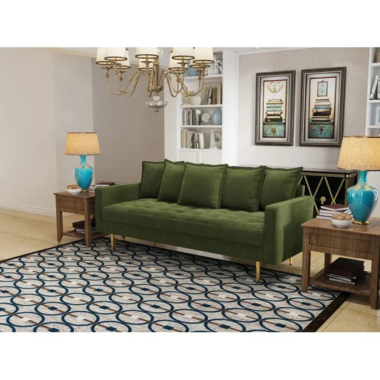 3 Seater Sofa: Mid Century Modern 3 Seater Couch Velveteen Sofa With Solid Wood Leg For Living Room