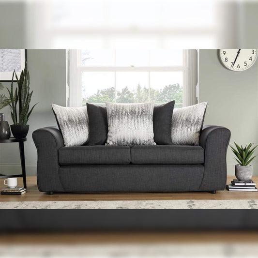 3 Seater Sofa:- Winslow Fabric Sofa Set (Black & Grey)
