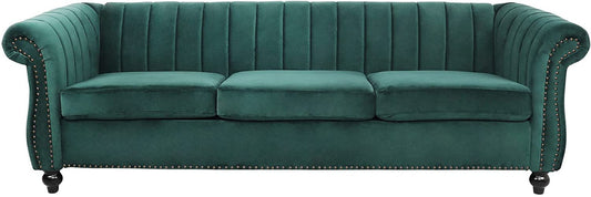 3 Seater Sofa : Tufted Velvet Sofa with Rolled armrests
