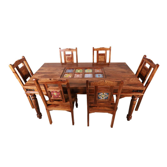 Sheesham Furniture:- Six Seater Ceramic Dining Set
