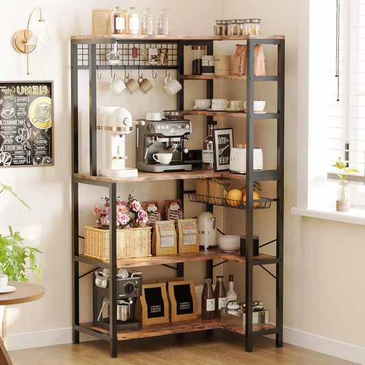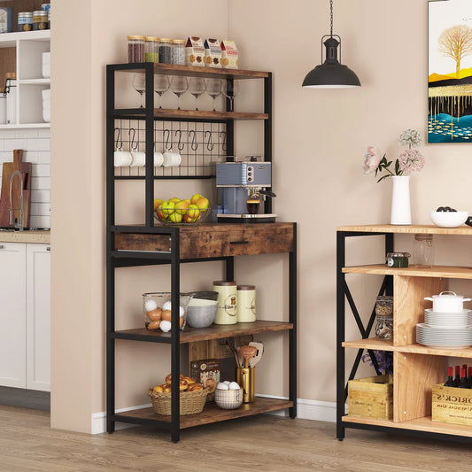 Kitchen Rack: 5 Tiers Coffee Bar Station with Led Lights