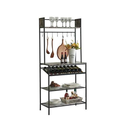 Kitchen Racks: Wine Bakers Rack with Freestanding Kitchen Racks: Shelves for Floor Storage Microwave Stand, Glass and Wine Bottle Holder Kitchen Organizers
