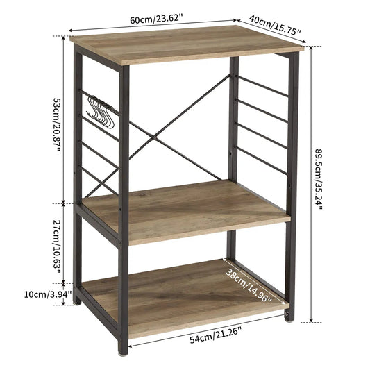 Kitchen Rack: 3-Tier Microwave Oven Stand with Metal Frame and 6 Hooks
