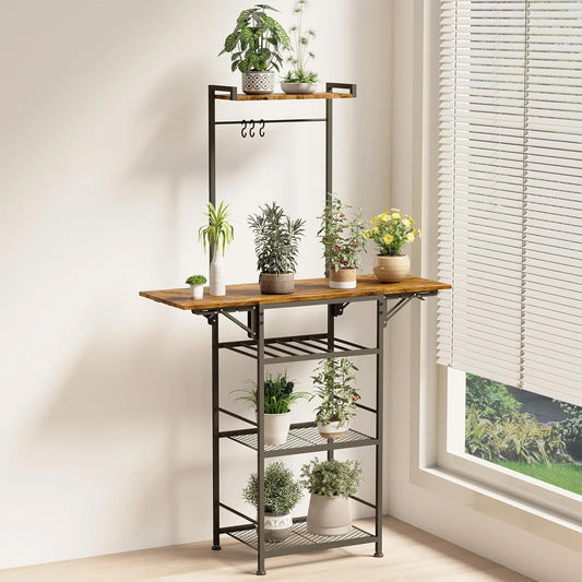 Kitchen Racks: 5-Tier Coffee Stand Station in a Corner with Two Foldable Shelves and Storage, Baker's Rack for Compact Areas