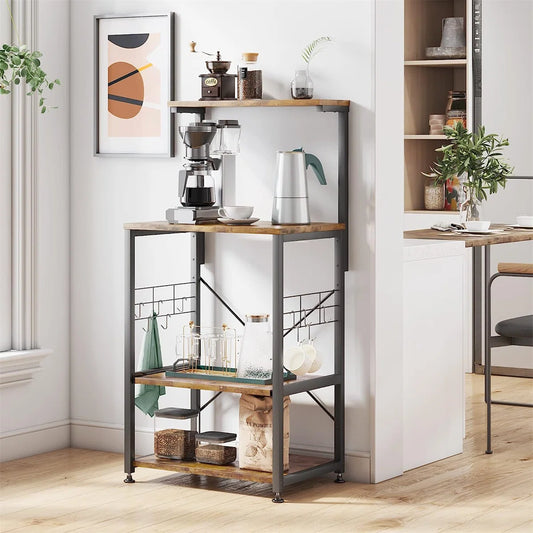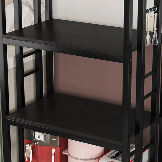 Kitchen Rack: 5-Tier Microwave Stand, Coffee Bar with S-Shaped Hooks