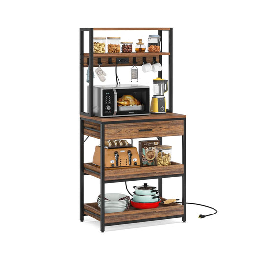 Kitchen Rack: Coffee Bar With Adjustable Shelves, 5-Tier Bakers Rack With Power Outlet LED Lights, Microwave Stand Kitchen Storage Shelf