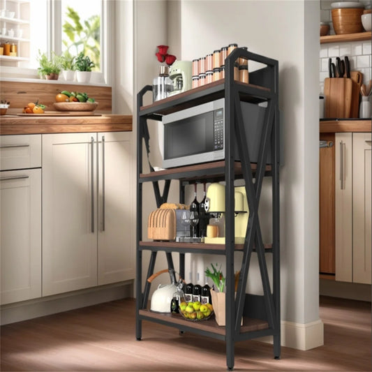 Kitchen Racks: 4-Tier Suitable for kitchen storage, this 55-inch metal and wood Baker's rack storage shelf