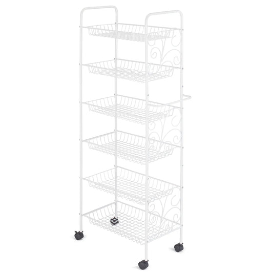 Kitchen Rack: 6-Tier Scrolling Metal Shelf on Wheels