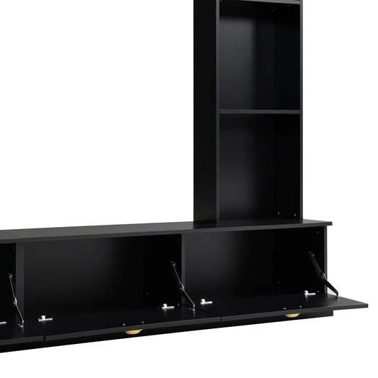 tv panel: Modern 4-in-1 tv panel with Storage, Golden Handles, Fits Up to 78" TVs