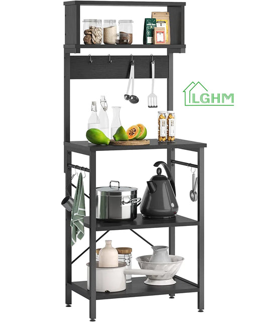 Kitchen Rack: Microwave Stand, Bar Station with Led Lights, Kitchen Storage Shelf, and Bakers Rack with Power Outlet