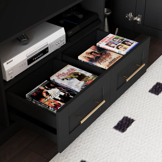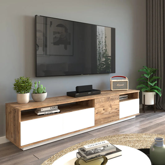 tv panel: 63" Modern tv panel with LED Lights and 2 Drawers, Fits 60–70" TVs