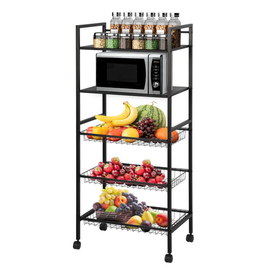 Kitchen Rack: 51.57'' H Five-Microwave Storage Rack with Wheels and Large Capacity