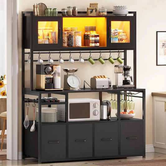 Kitchen Racks: It is a 47.2-inch microwave stand with storage and a power outlet