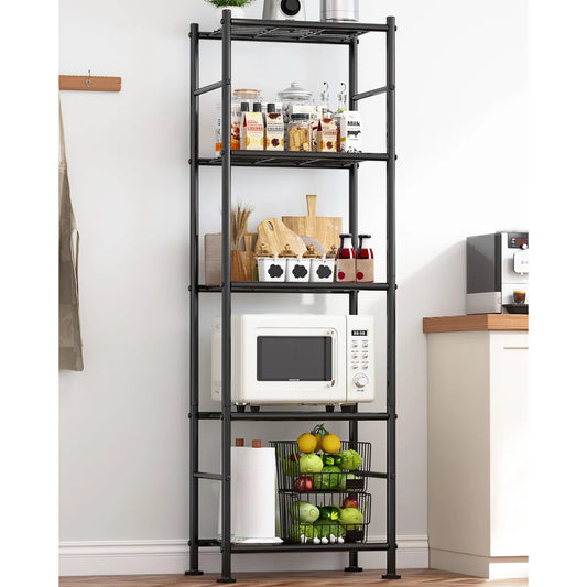 Kitchen Racks: 5-Tier Kitchen Bakers Rack With 10 S-Shaped Hooks, Industrial Microwave Oven Stand
