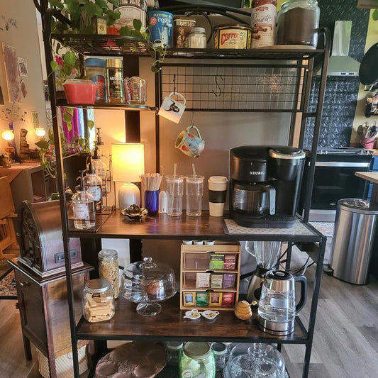 Kitchen Rack: 31.5'' Coffee Bar Stand With Adjustable Storage Shelf