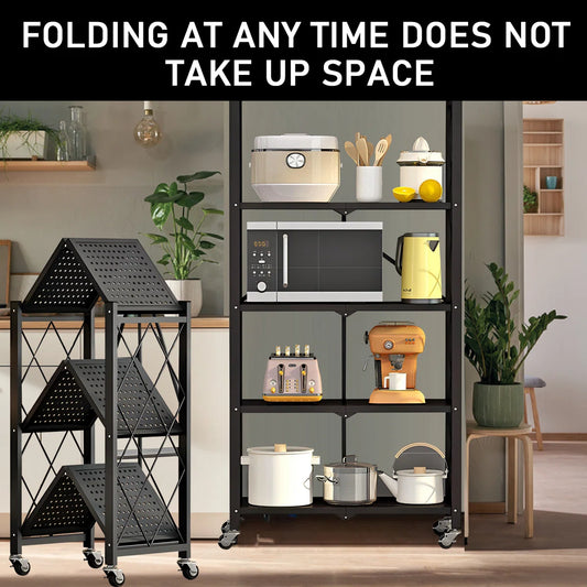 Kitchen Racks: Foldable Shelves for Home and Kitchen Storage: 5-tier Metal Rack with Swivel Wheels