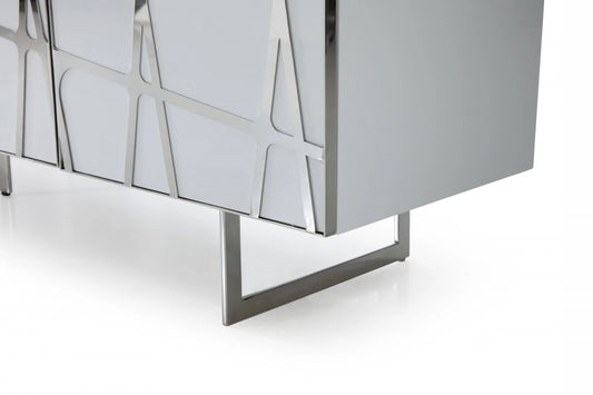 Dining Set : Eva Square Glass and Chrome Dining Table with 4 Leon Stone Grey Leatherette Chairs