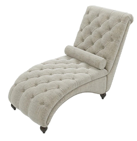 Chaise Lounge: Linen Upholstered Classic Chaise Lounge With Tufted Button