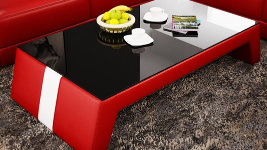 Leatherette Coffee Table: Contemporary Red Leatherette Coffee Table W/Black Glass Table Top