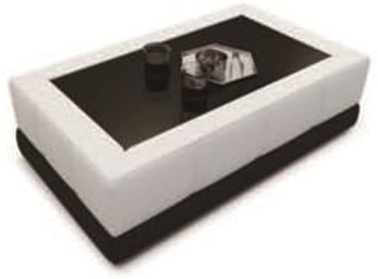 Leatherette Coffee Table: Contemporary White And Black Leatherette Coffee Table W/Black Glass Table Top