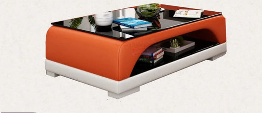 Leatherette Coffee Table : Contemporary White/orange Leatherette Coffee Table W/Black Glass Table Top