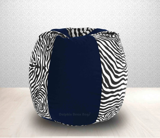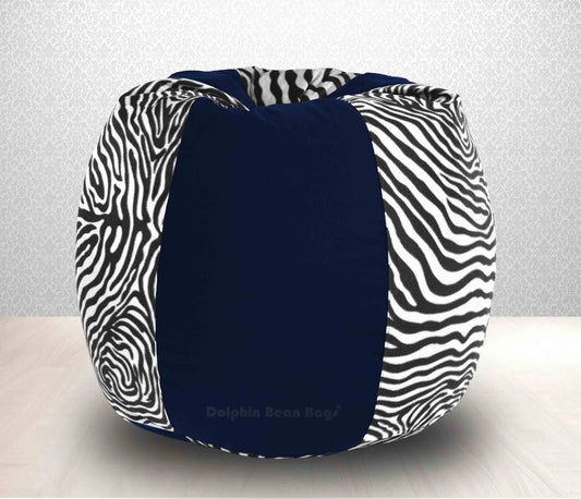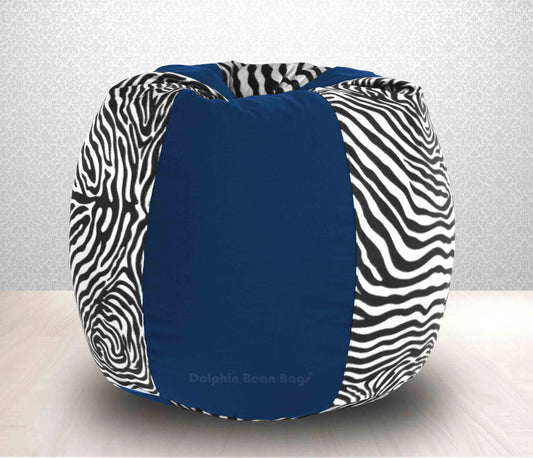 Bean Bag : 3XL N.Blue/Zebra(Blk-White)-FABRIC-FILLED & WASHABLE (with Beans)