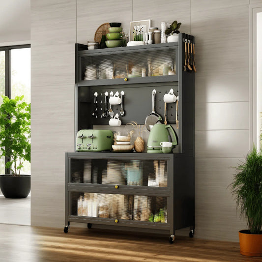 Kitchen Racks: 5-tier kitchen baker's rack with hooks, coffee bar and microwave stand, black finish