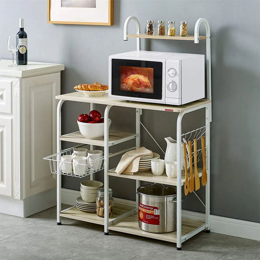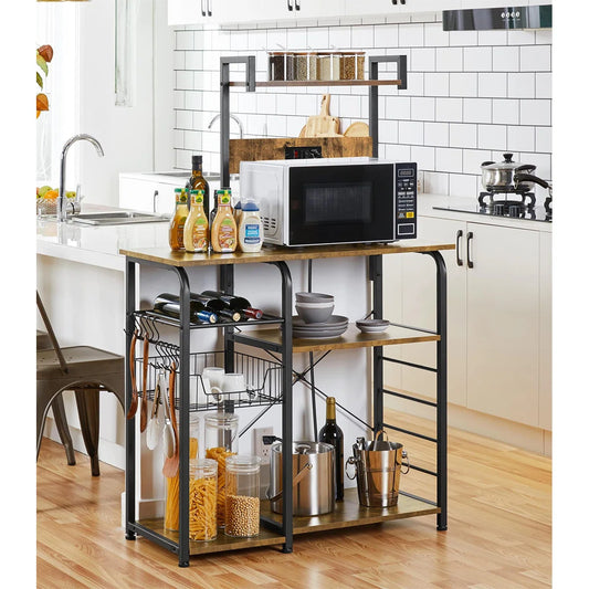 Kitchen Rack: Bakers Rack with Power Outlets, 10-hook Kitchen Utility Storage Shelf, and 8-Tier Microwave Stand