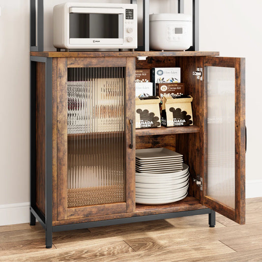 Microwave Stands: Glass-doored Kitchen Pantry Cabinet & Hutch storage