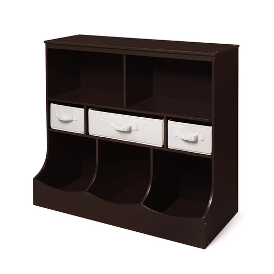 Kids Toy Storage Unit: Classic Wooden Organiser with Cubbies and Bin