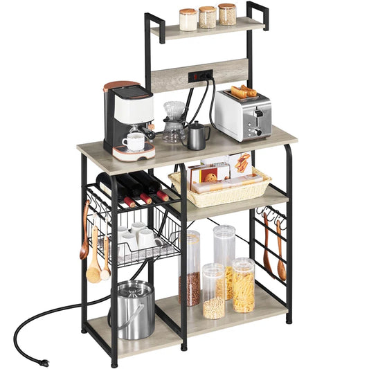 Kitchen Racks: 15" Kitchen with Hooks and Shelves for Storage, Coffee Bar Station with Wine Rack Holder, and Microwave Stand