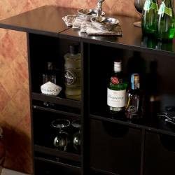 Bar Cabinet: Black Fold Away Bar Transitional MDF Wood