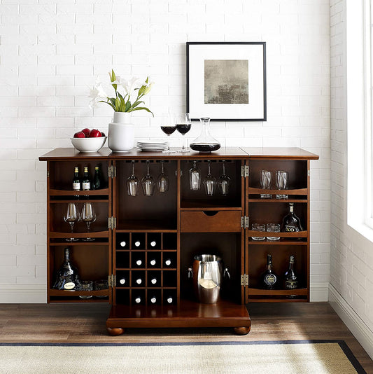 Bar Cabinet: Expandable Top Bar Cabinet, Vintage Mahogany