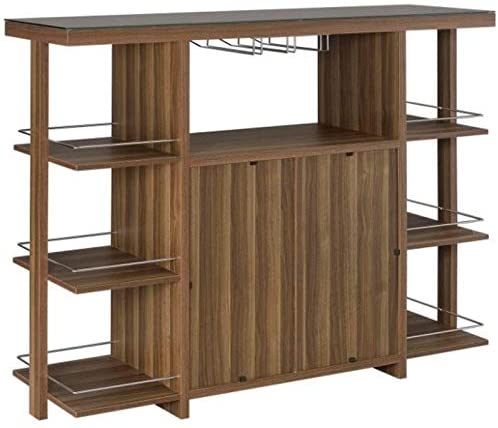Bar Cabinet: Modern Bar with Wine Rack Storage Cabinet, Walnut