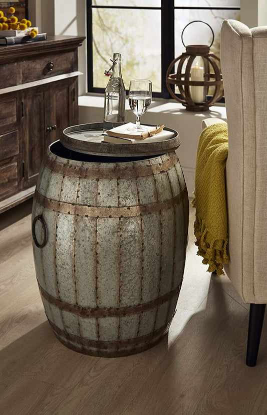 Bar Cabinet: Vintage Inspired Iron Barrel, Rustic Metal