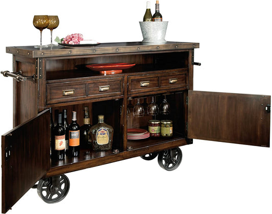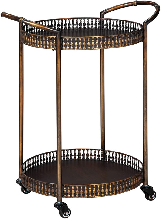 Bar Cabinet: Vintage Metal Bar Cart with Caster Wheels, Bronze Finish