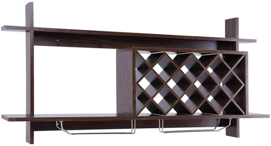 Bar Cabinet: Wall Mount Wine Rack Organizer With Glass Holder & Storage Shelf