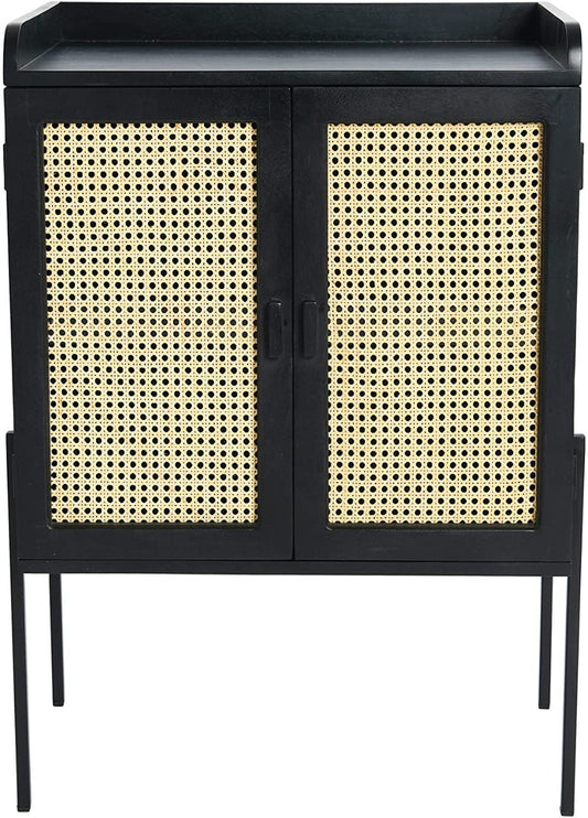 Bar Cabinet: Wood Natural Woven Cane Details Bar Cabinet, Black Finish