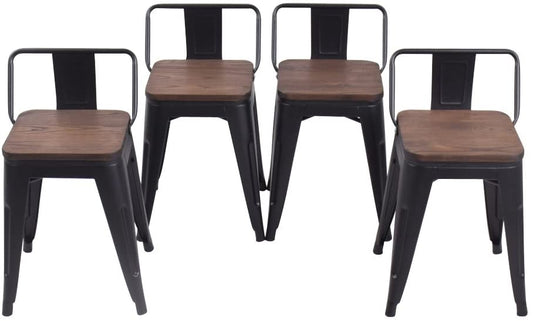 Bar Stool: Counter Bar Chairs with Wood Top Low Back Matte Black