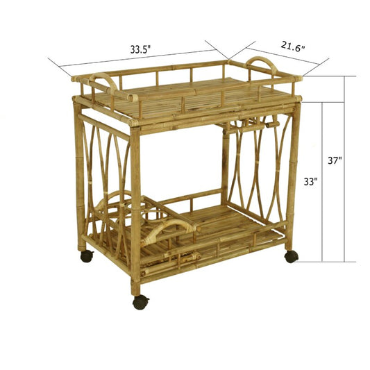 Bar Trolley : Bamboo Rolling Wine Buffet Serving Bar Trolley