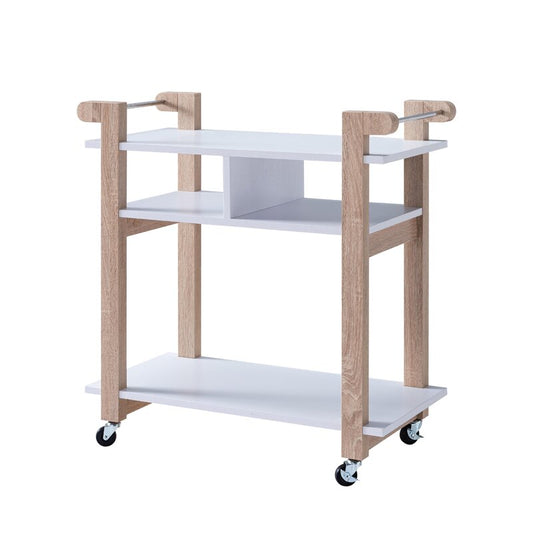 Serving trolley is made for serving food and wine bottles. Serving trolley have many space for putting items and wine bottle. You can also serve fruits in serving trolley.