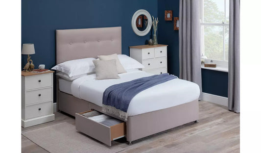 Double Bed: Sandstone Small Double Bed With Storage Drawer
