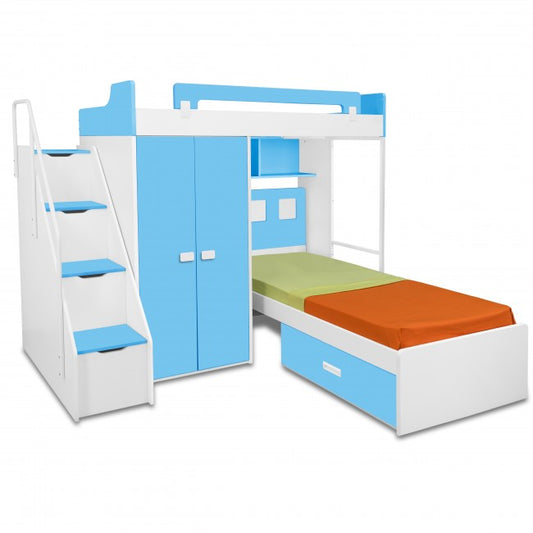 This blue-green white-themed L-molded bunk bed is actually as space-proficient as the other bunk bed plans.