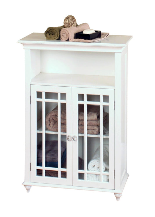 Floor Cabinets: White Bathroom Double Door Floor Cabinet