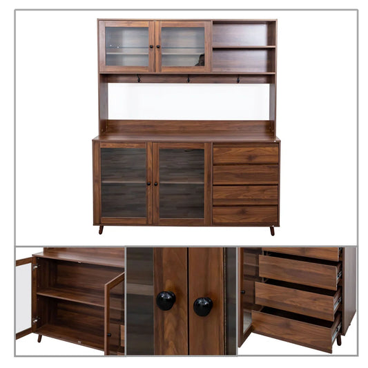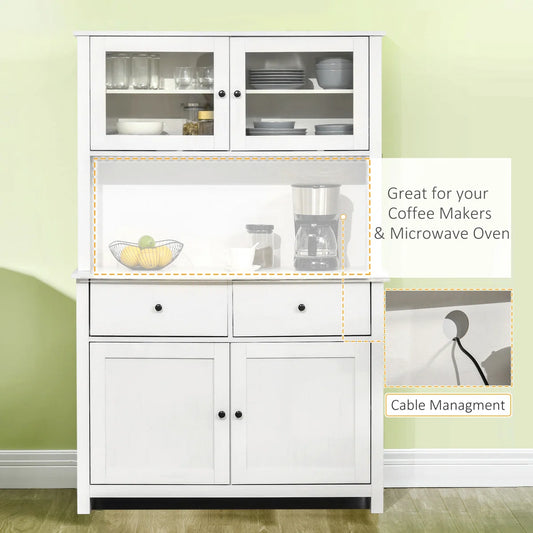 Microwave Stands : 63.5" Kitchen Buffet with Hutch, Glass Doors, Drawers & Microwave Cabinets