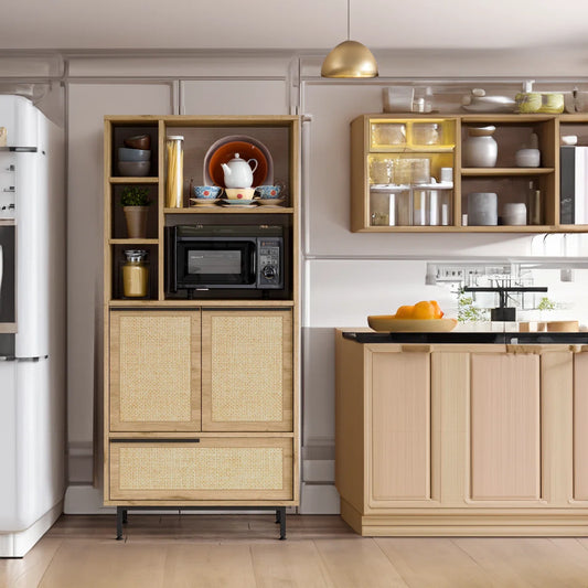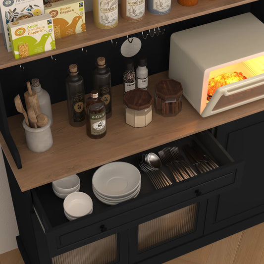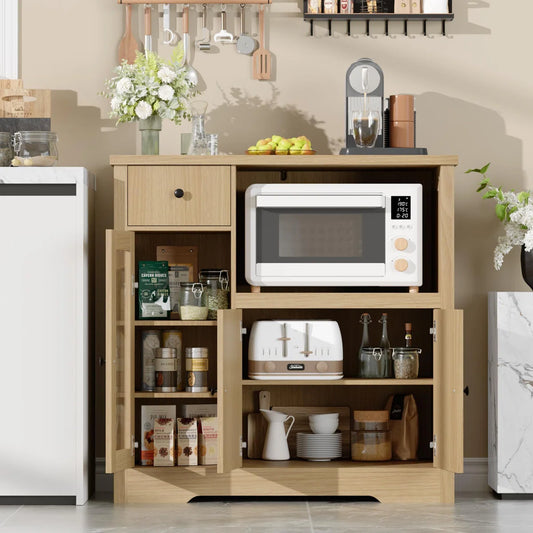 Microwave Stands: Stylish Sideboard Cabinet with Shelves, Space Drawers, and Glass Doors
