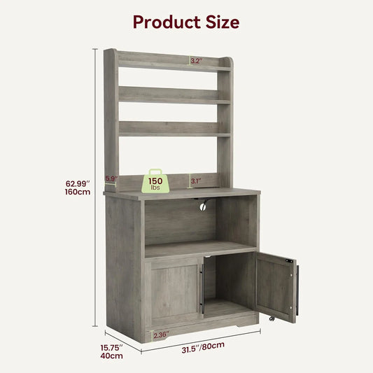 Kitchen Rack: 30.7" Bakers Rack with 2 Glass Doors, Power Outlet Farmhouse Bakers Rack and Kitchen Bakers Rack Cabinet with Large Storage