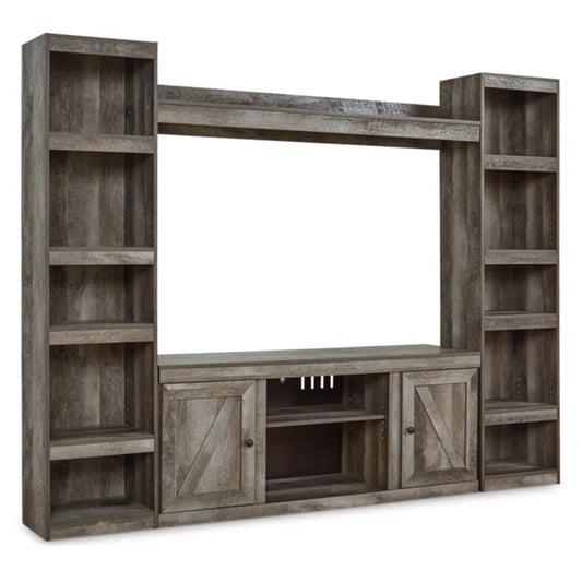 tv panel: 4-piece entertainment center with TV panel, cabinets, and wall-mounted shelves