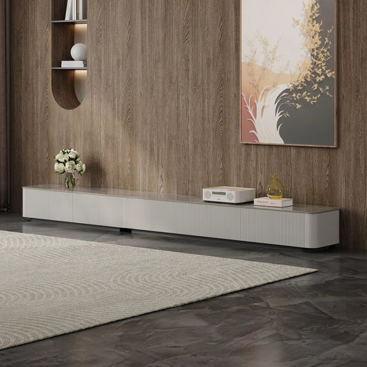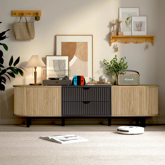 tv panel: 71" fluted media console with oval shape, drawer, and cabinet storage